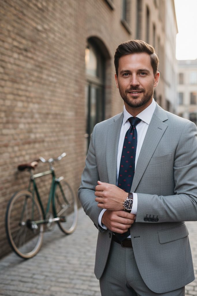 Granatowy krawat męski wykonany z poliestru zadowoli każdego rowerzystę. Czerwony rower na niebieskim tle będzie przyciągał uwagę niezależnie od tego, czy założysz krawat do pracy, czy na ważne wydarzenie. Dzięki temu akcesorium nie odmawiaj sobie sportowego ducha.