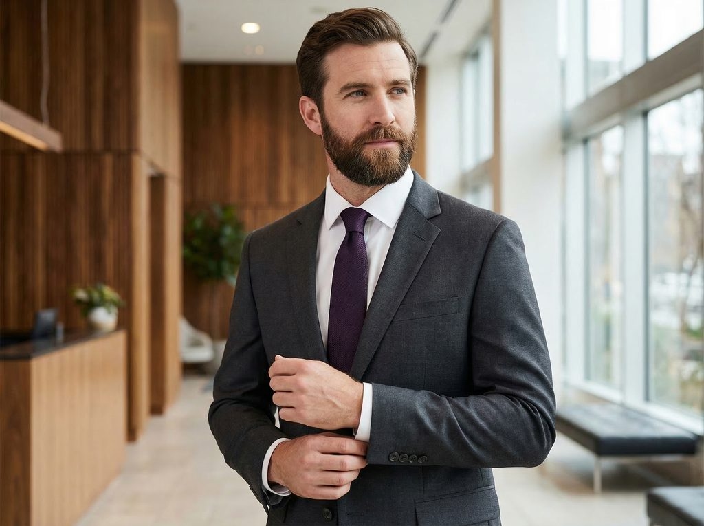 Najlepiej prezentuje się z białą lub jasnoniebieską koszulą, która podkreśla jego odcień. Granatowy, szary lub czarny garnitur tworzy spójną i elegancką stylizację. Całość można uzupełnić prostą poszetką lub dopasowanymi szelkami, które zachowają równowagę. W bardziej nowoczesnej wersji dobrze sprawdzi się jasna marynarka i gładka koszula bez wzoru. Dodatki w ciemniejszych tonach podkreślą charakter stylizacji.