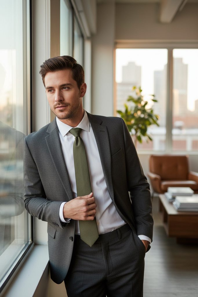 Ten krawat świetnie pasuje zarówno do ciemnych, jak i jasnych garniturów. Na formalne okazje zestaw go z białą koszulą i ciemnym garniturem. W swobodnym wydaniu możesz go nosić z jaśniejszymi odcieniami szarości lub beżu. Pamiętaj, że detale robią różnicę – spróbuj dopasować do niego chusteczkę lub spinki do mankietów w podobnym odcieniu.