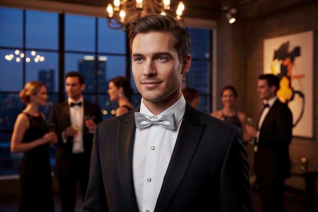 Elegancka srebrna muszka męska o rozmiarze 10 cm pasuje idealnie zarówno do koszuli frakowej jak i smokingowej. Z tyłu muszki jest umieszczony haczyk z oczkiem, co umożliwia proste dopasowanie długości do obwodu Twojej szyi.
