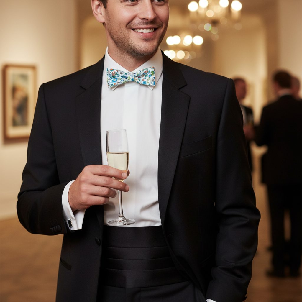 Klasyczna bawełniana muszka w kwiaty łąki o rozmiarze 10 cm pasuje idealnie zarówno do koszuli frakowej jak i smokingowej. Z tyłu muszki jest umieszczony haczyk z oczkiem, co umożliwia proste dopasowanie długości do obwodu Twojej szyi.