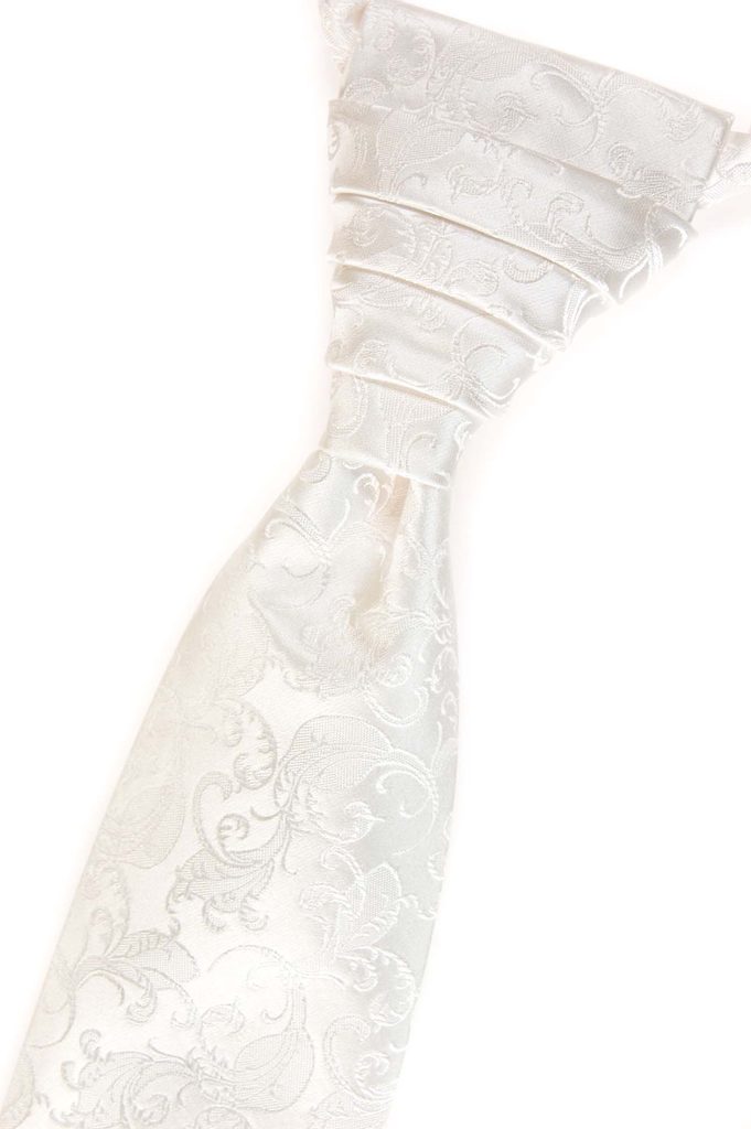 Odświętny krawat męski to dobry wybór na wydarzenia towarzyskie. Świetnie pasuje na przykład w zestawieniu z kamizelką weselną dla pana młodego. Kremowy wzorzysty krawat ślubny dostarczamy w zestawie z poszetką w tym samym kolorze. Doskonale ożywi Twój outfit i doda wyjątkowości Twojemu wyglądowi.