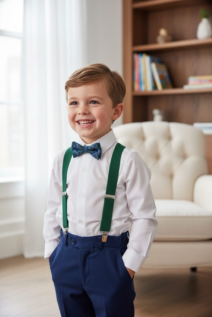 Te dziecięce szelki są przeznaczone dla naszych małych eleganckich. Zielone szelki dla dzieci mają na końcach elastyczne paski z metalowymi klipsami, dzięki czemu można je łatwo przymocować do spodni.